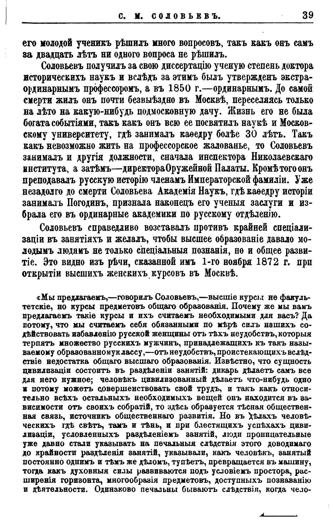 вакъ невозможно жить на профессорское жалованье, то Соловьевъ