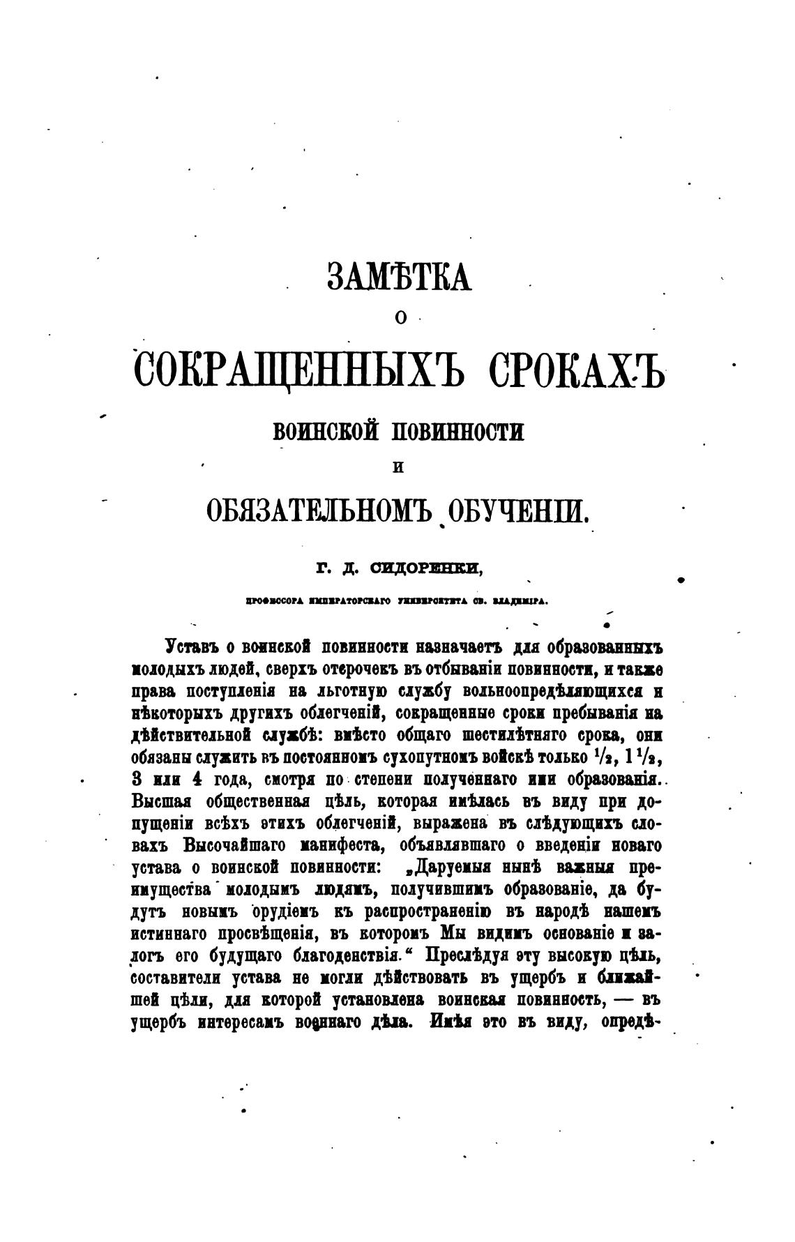 Уставь о воинской повинности назначить ди обрввованннхъ