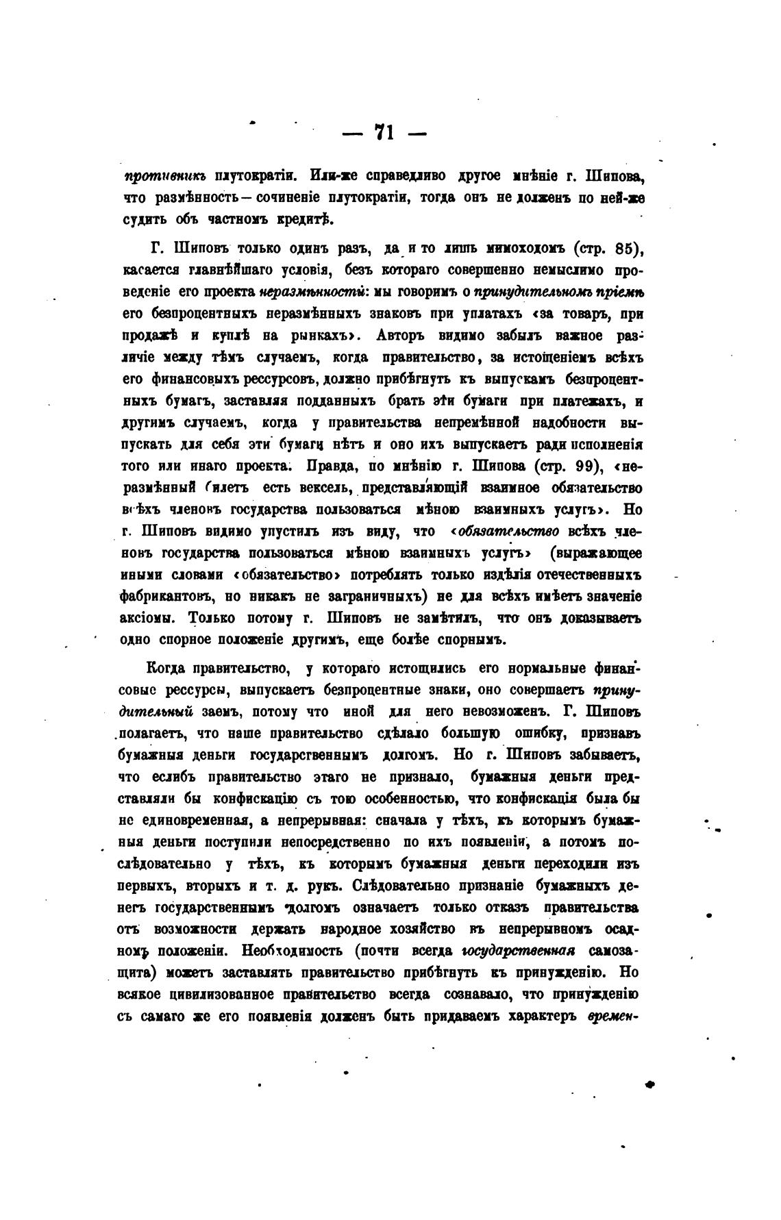 бумажныя деньги долгоцъ. Но г. Шиповъ