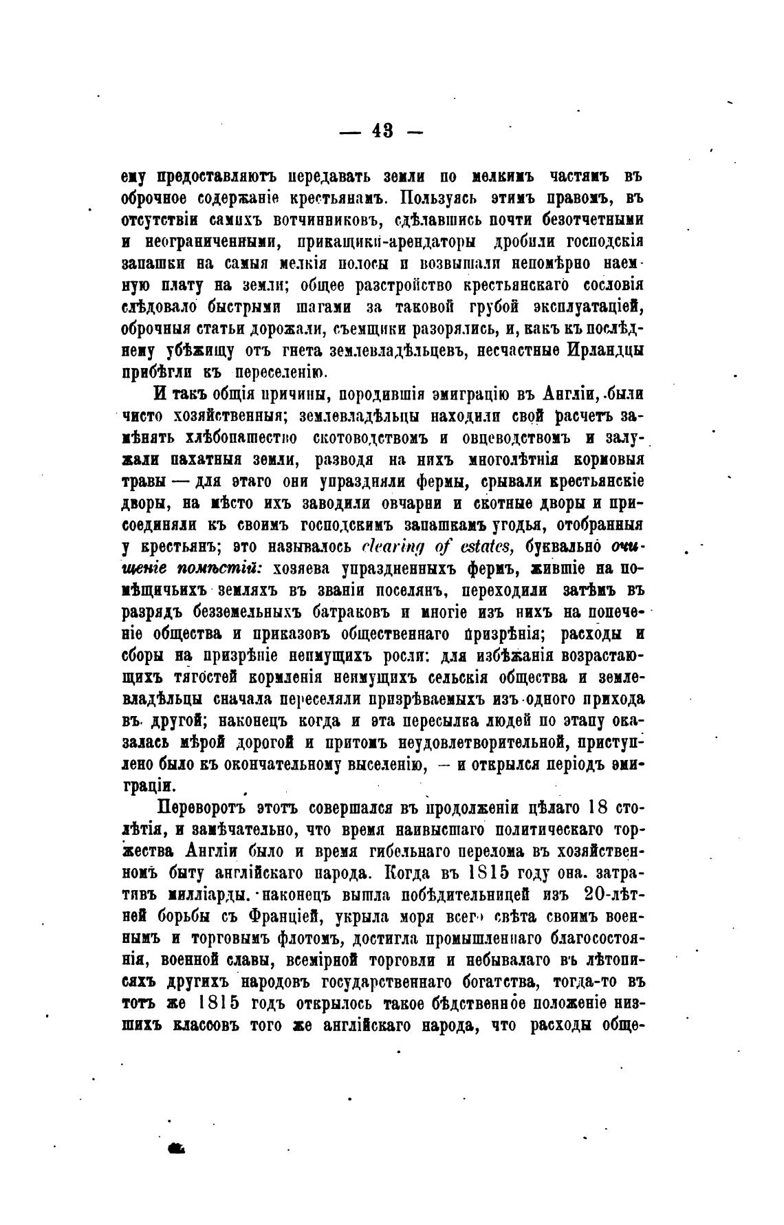 у крестьанъ; вто называлось rlearing of estates, буквыьно очи-