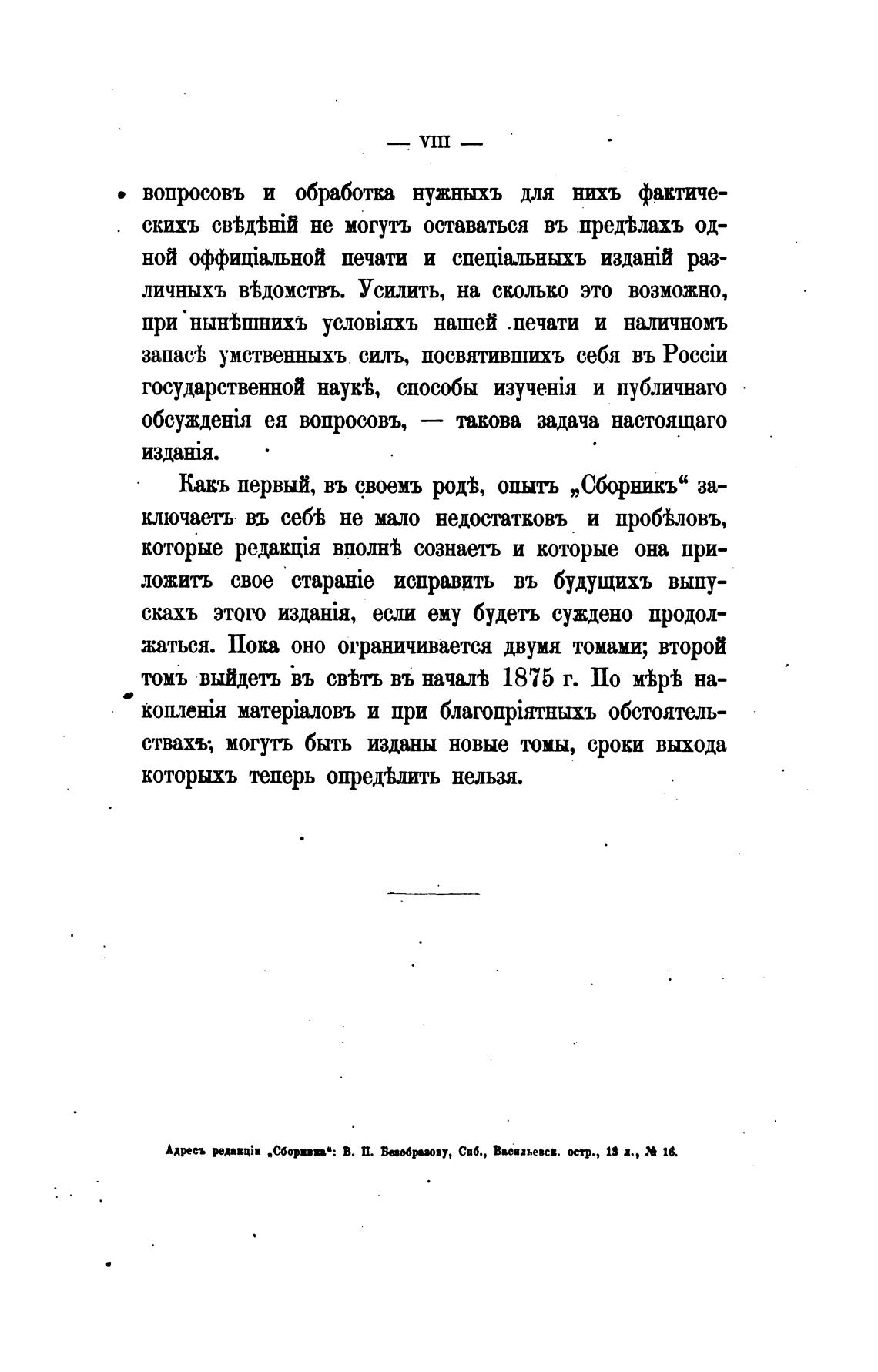 томъ выйдеть Въ въ началеь 1875 г. По на-