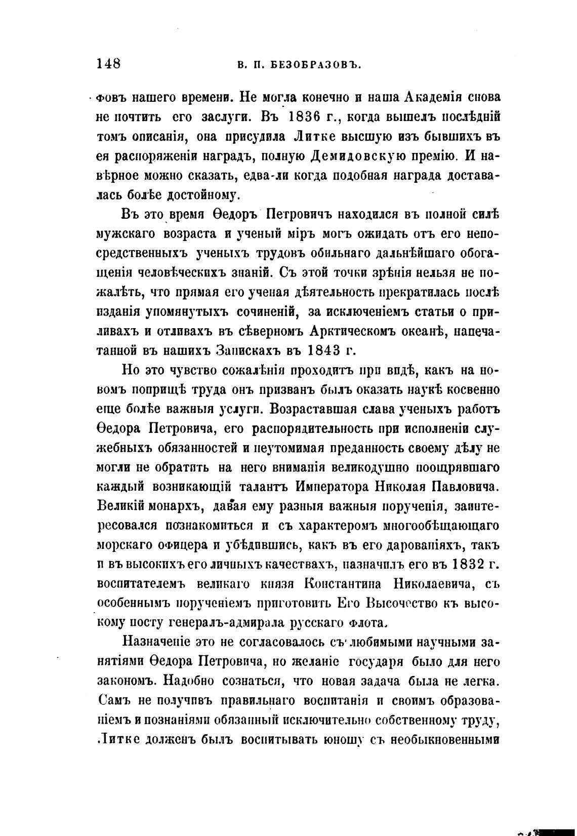 Литке долженъ быль воспитывать юношу съ необыкновенными
