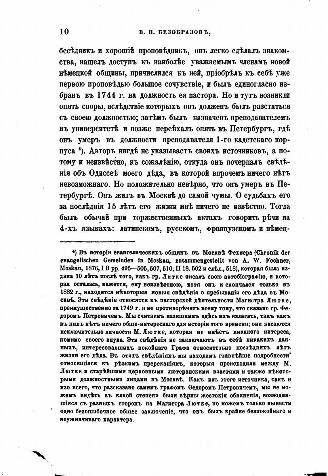 4) Въ евангелическяхъ общинъ въ Москв% Фехнера (Chronik der