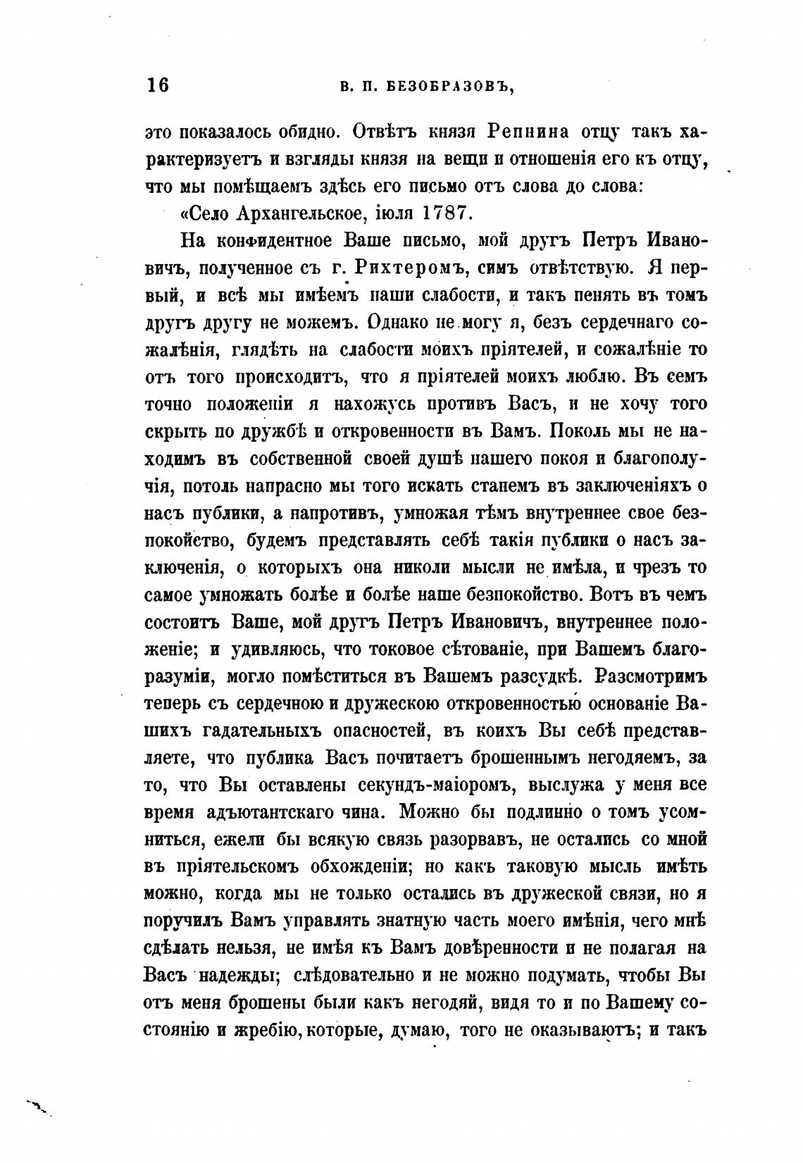 состоить Ваше, мой другъ Петръ Ивановичъ, внутреннее поло-