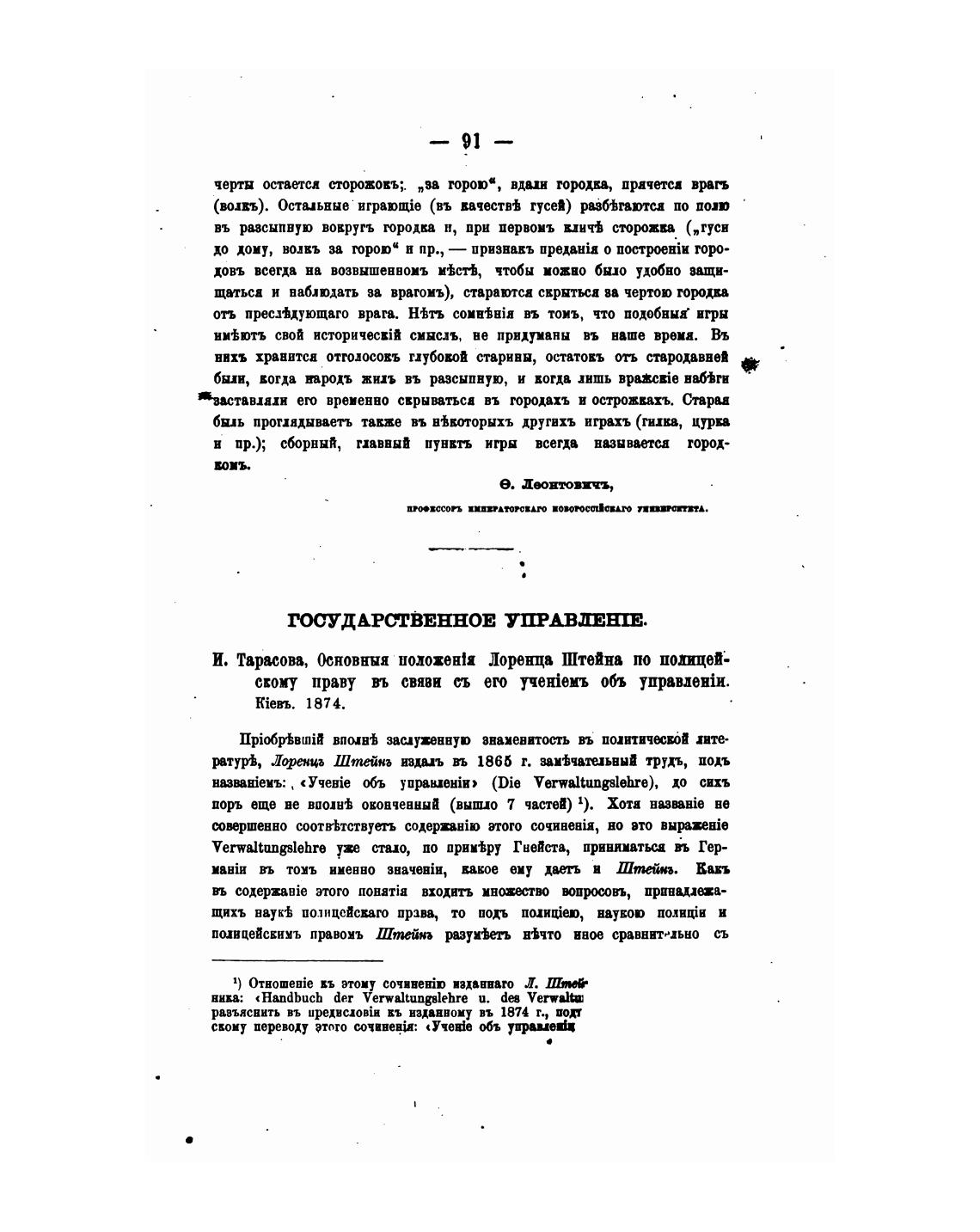 И. Тариова, Основныя иолохен1а Лоренца Штейна по полицей'