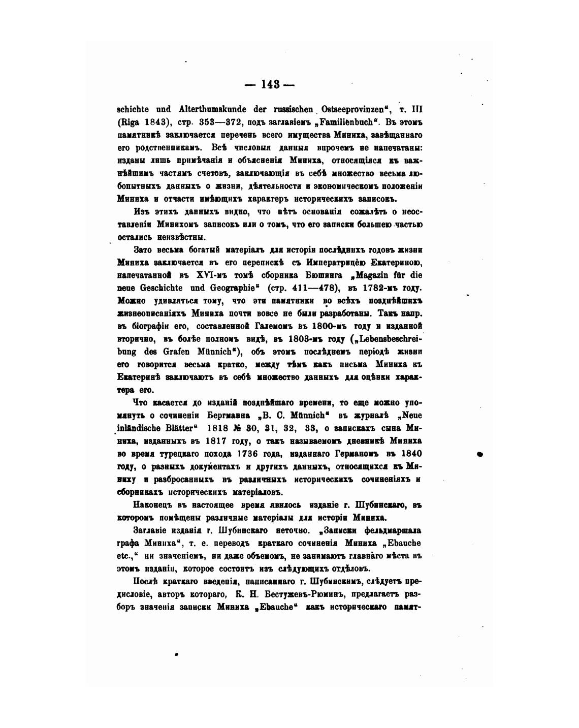 Миниха н отчасти пмЬщихъ характеръ историческнхъ записовъ.