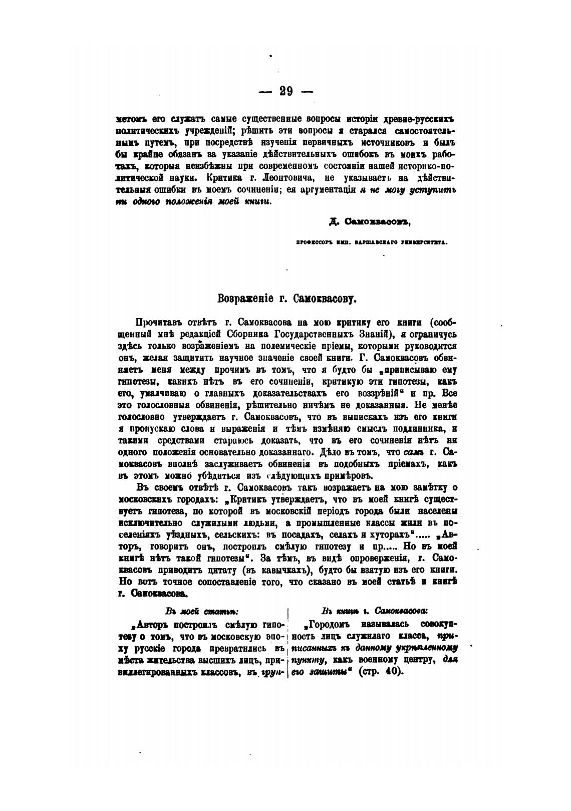 Прочитавъ отв%ть г. Самоквасои на мою критику ero книги (сМ-