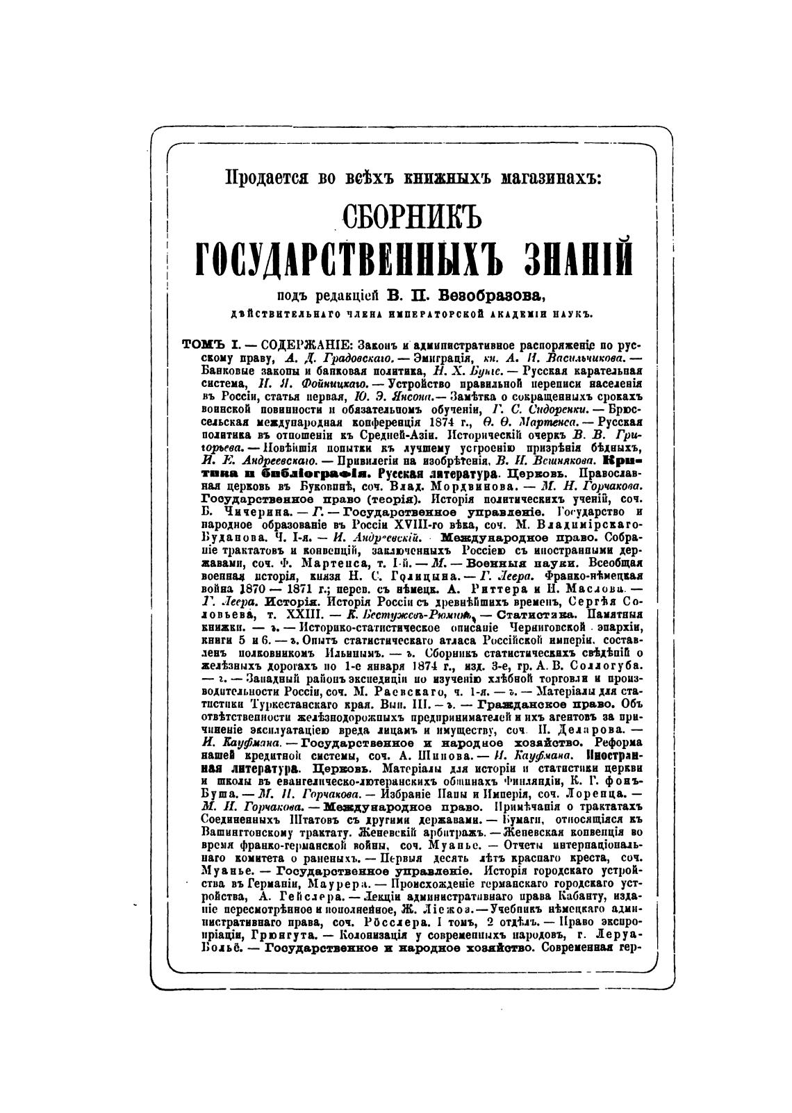 скому праву, А. Градовскаго. — кн. А. Н. Васильчикова. —