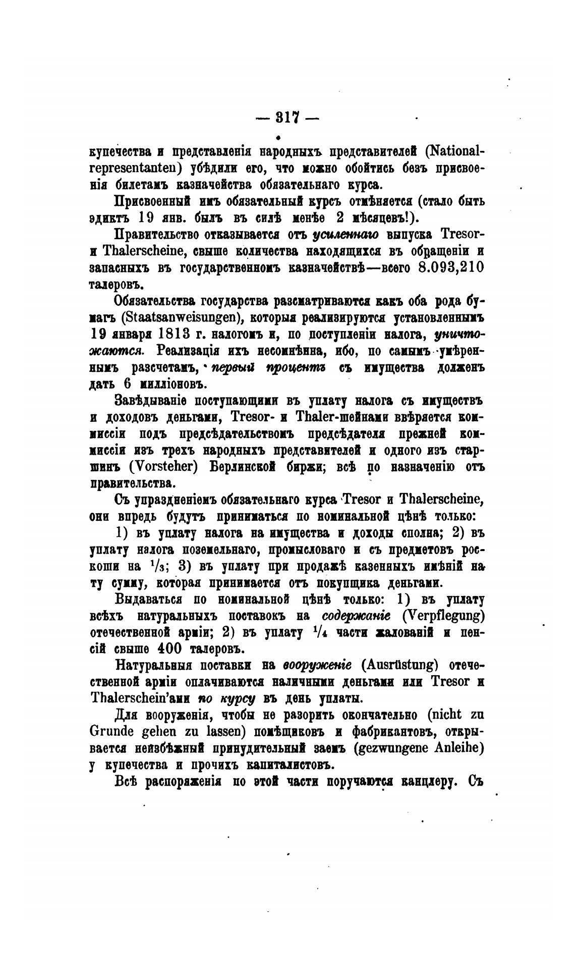 Съ обязательнаго кура Tresor и Thalerscheine,