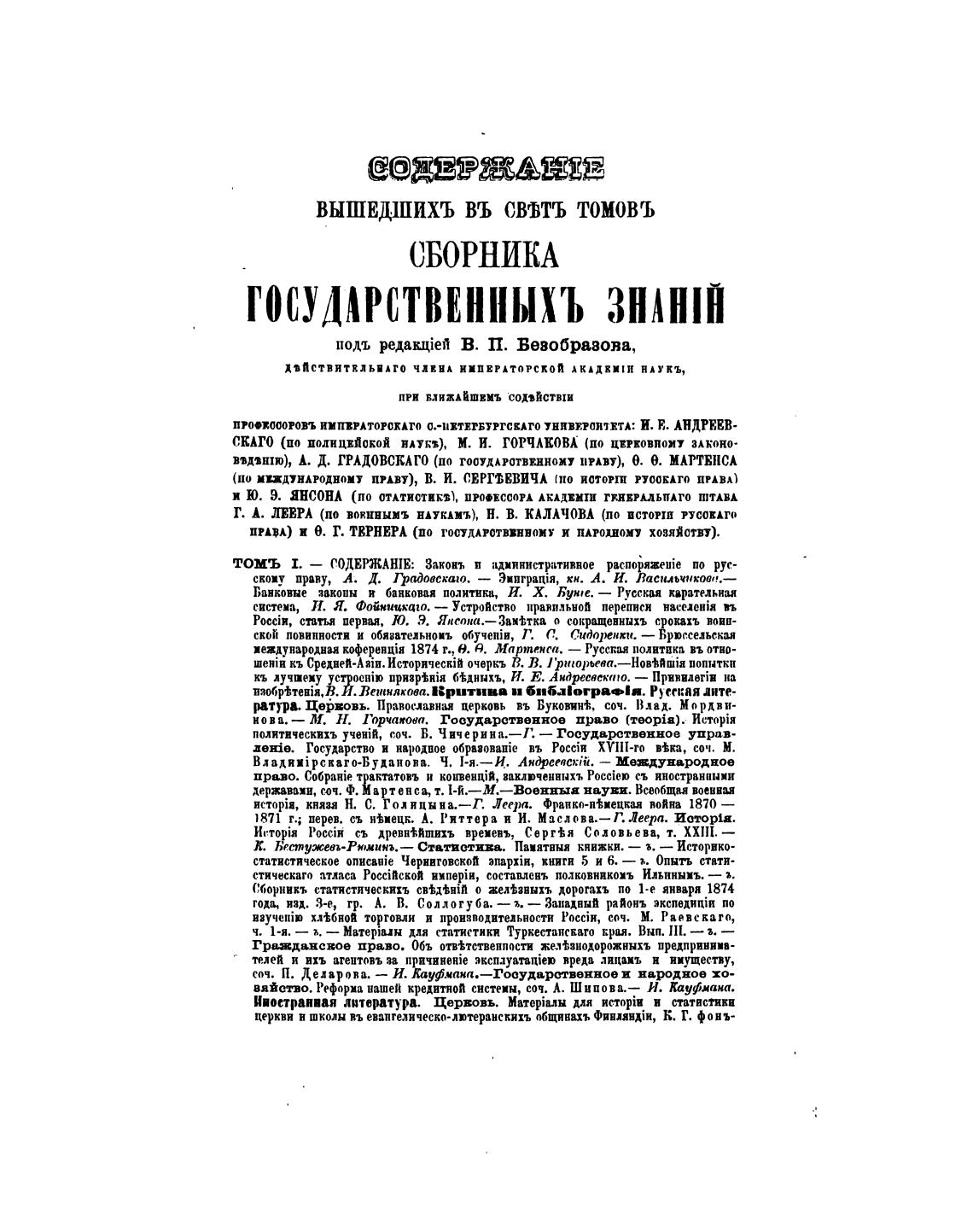 ТОМЬ 1. — СОДЕРЖАШЕ: Законт п административное распоряже1йе по рус-