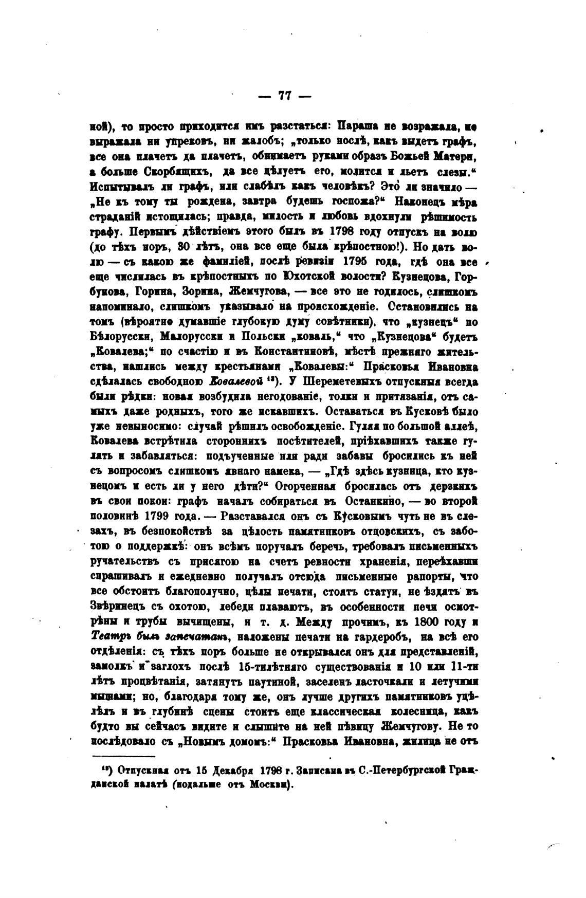 сдЬапсь Швалевой 13). У Шереметевыхъ отпускныа всегда