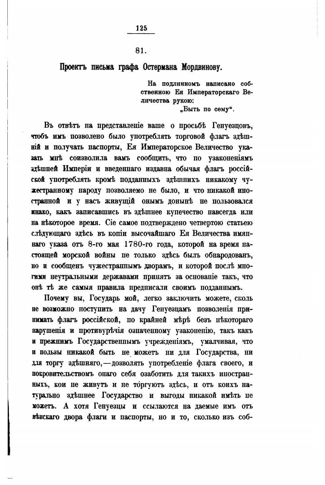 Пунгь письма графа Остермана Мордвинову.