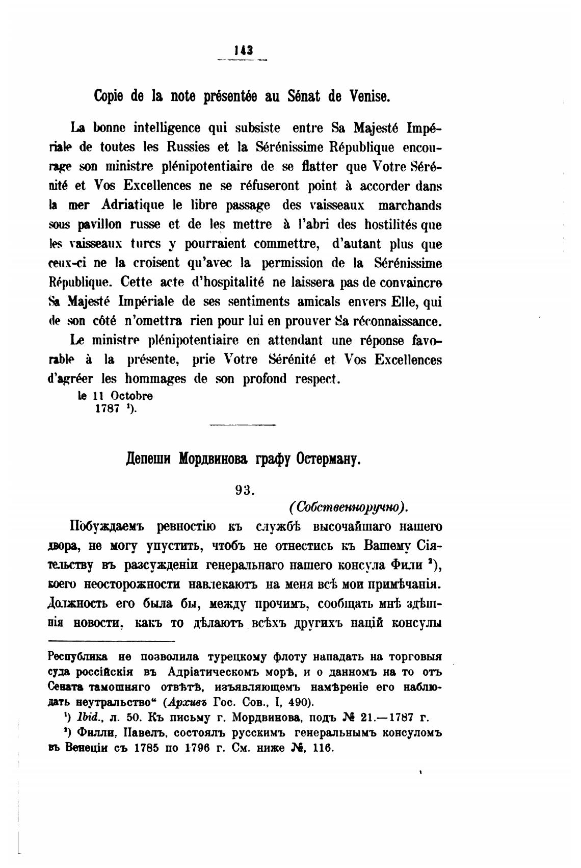 Депеши Мордвинов графу Остерману.