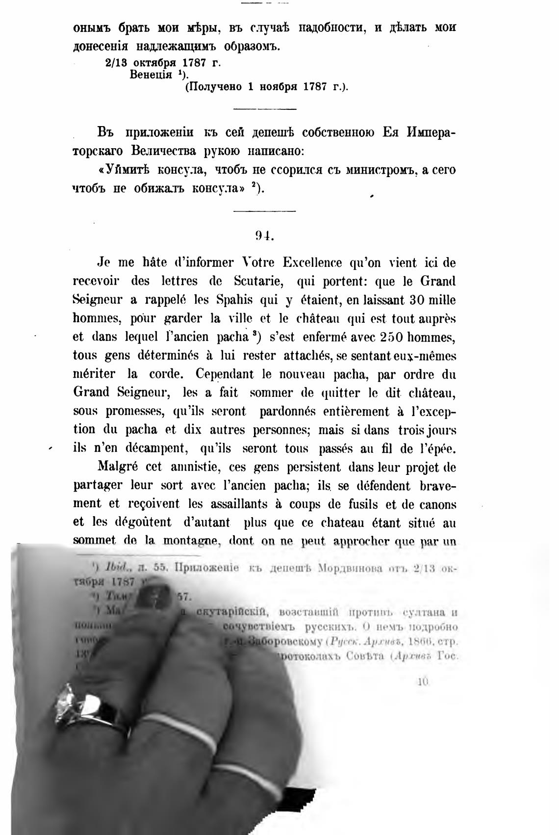 Въ кь сей депешЬ собственною Ея Ишшра-