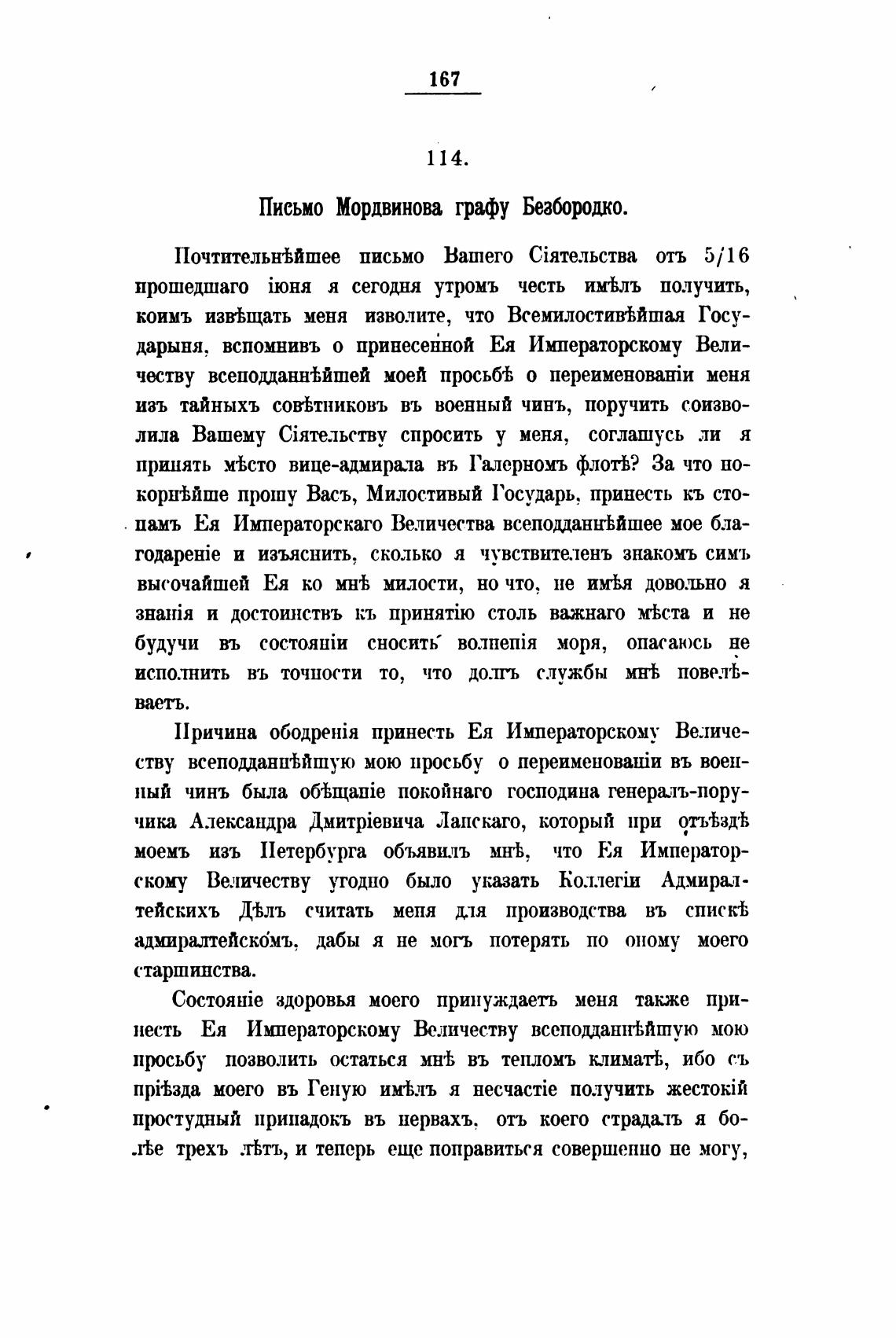 Письмо Мордвинова графу Безбородко.