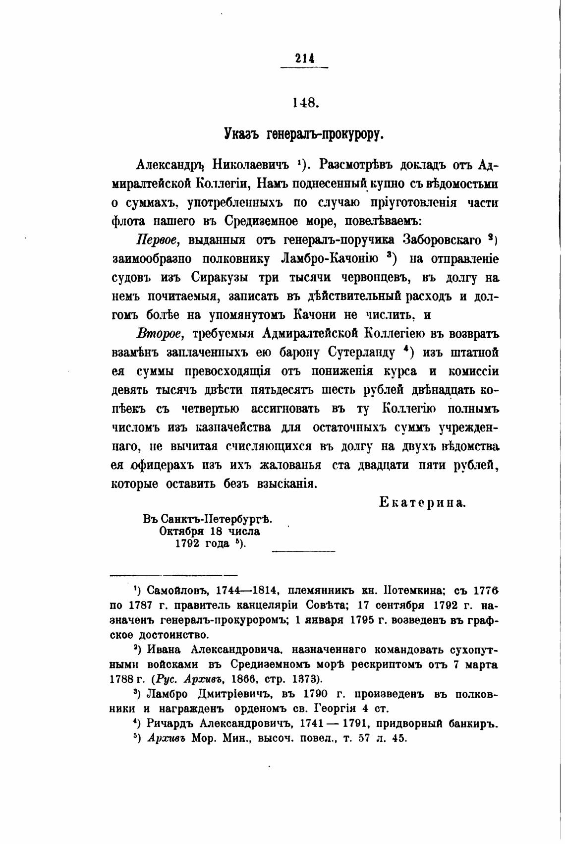 5) Архивб Мор. Мин., высоч. повел. , т. 57 л. 45.