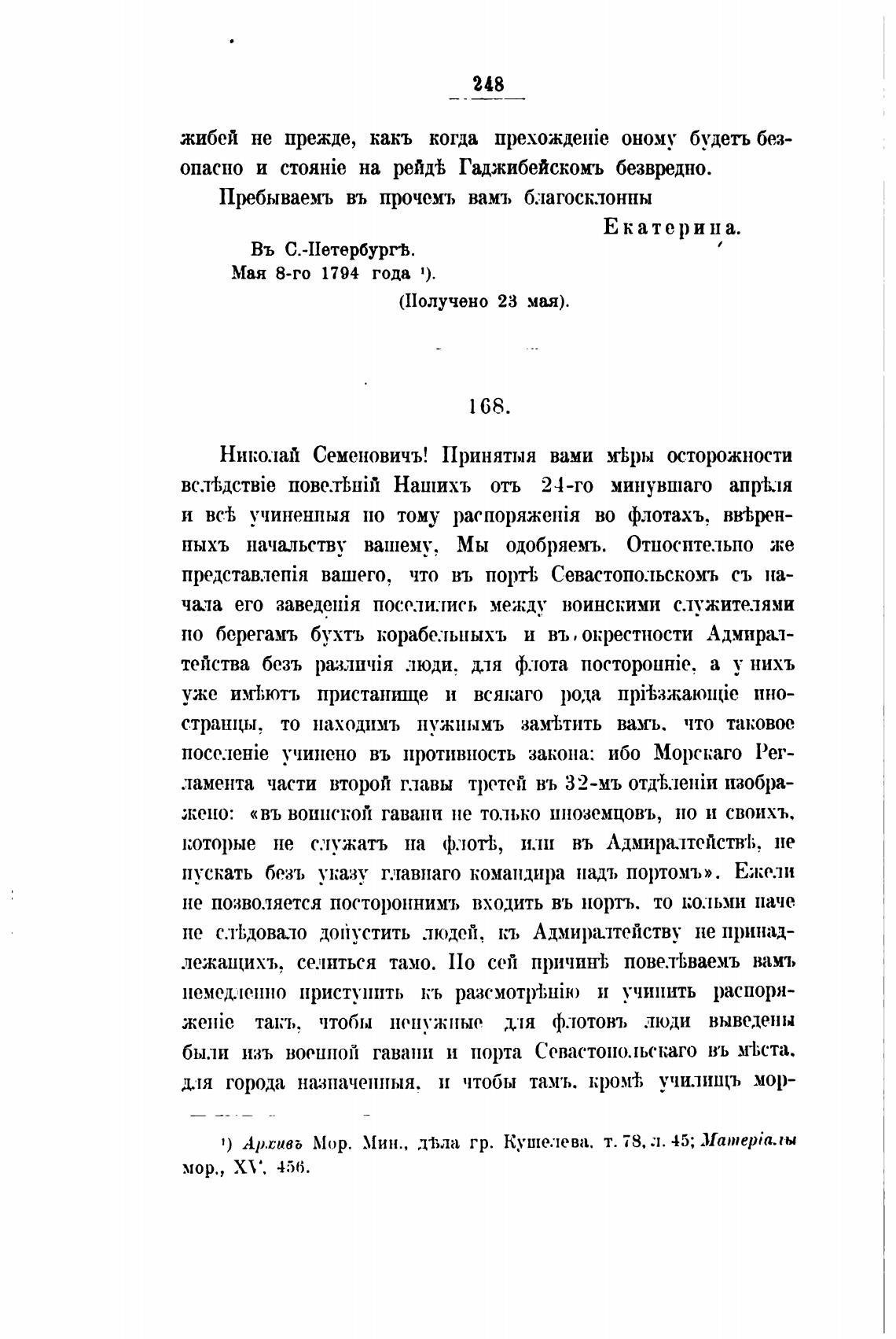 1) Ар.гивь Мор. Мин., дТ,ла гр. Кушелева. т. 78, л. 45; Машер;алы
