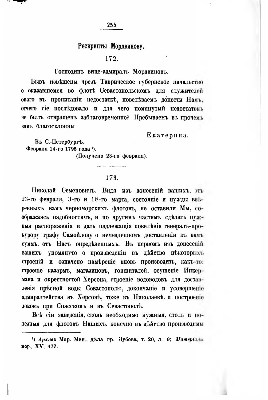 1) Арпиъ Мор. Мин.. д%ла гр. Зубова. т. 20, л. 9; Уапгерйыы