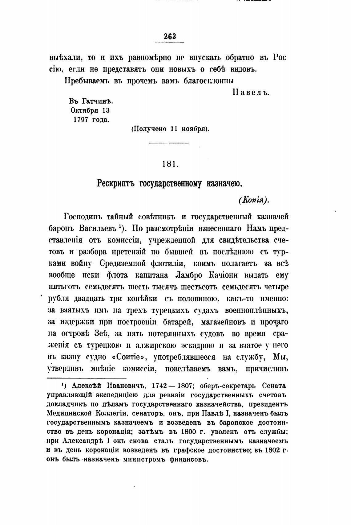 Рескрипть государственному казначею.