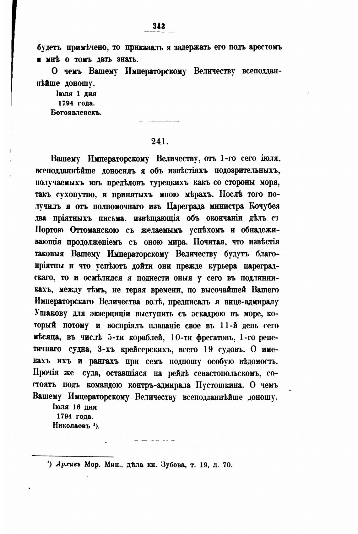 Архива Мор. Мин., д•Вла кн. Зубова, т. 19, л. 70.