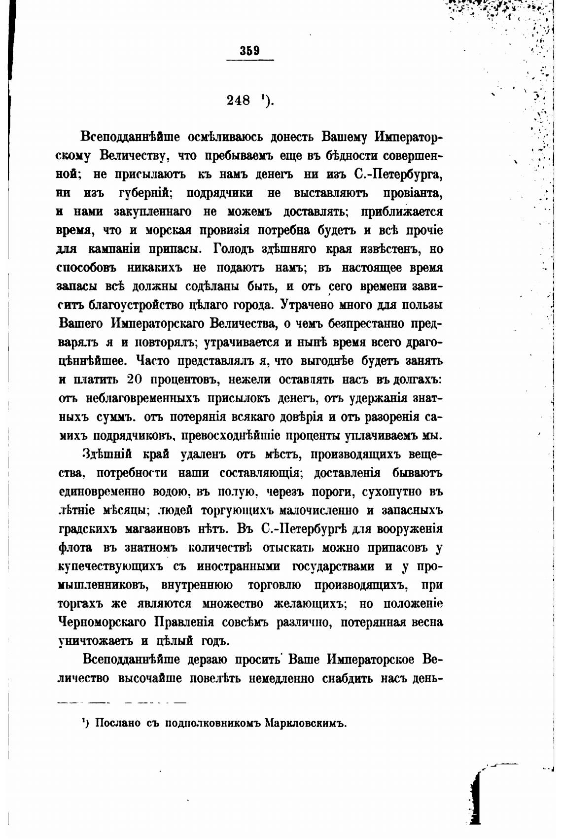 1) Послано съ подполковникомъ Маркловскимъ.