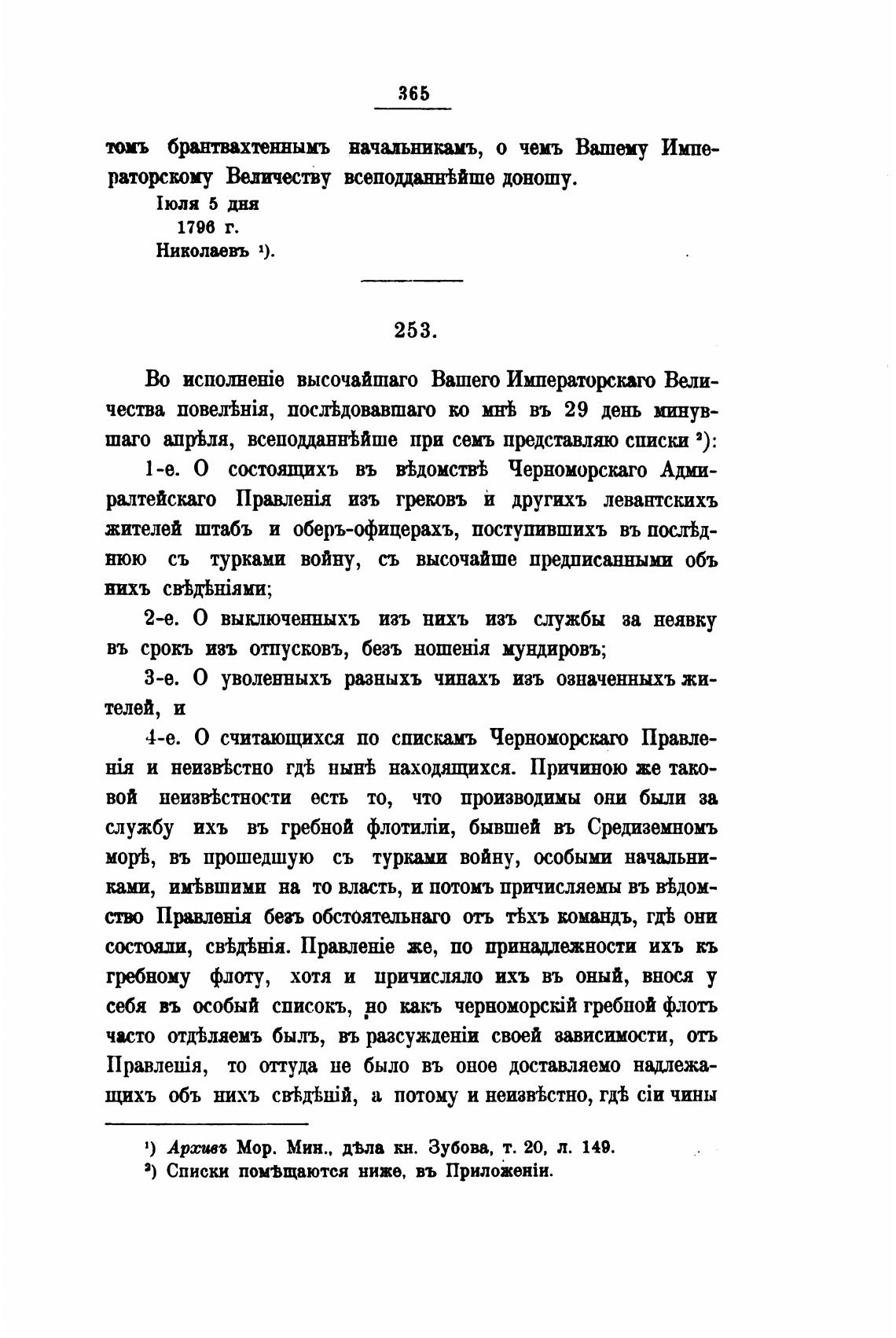 1) Арсивъ Мор. Мин., д•вла кн. Зубова, т. 20, л. 149.