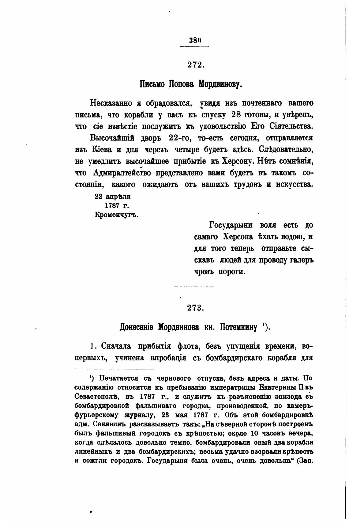 Мордвинова кн. Потемкину 1).