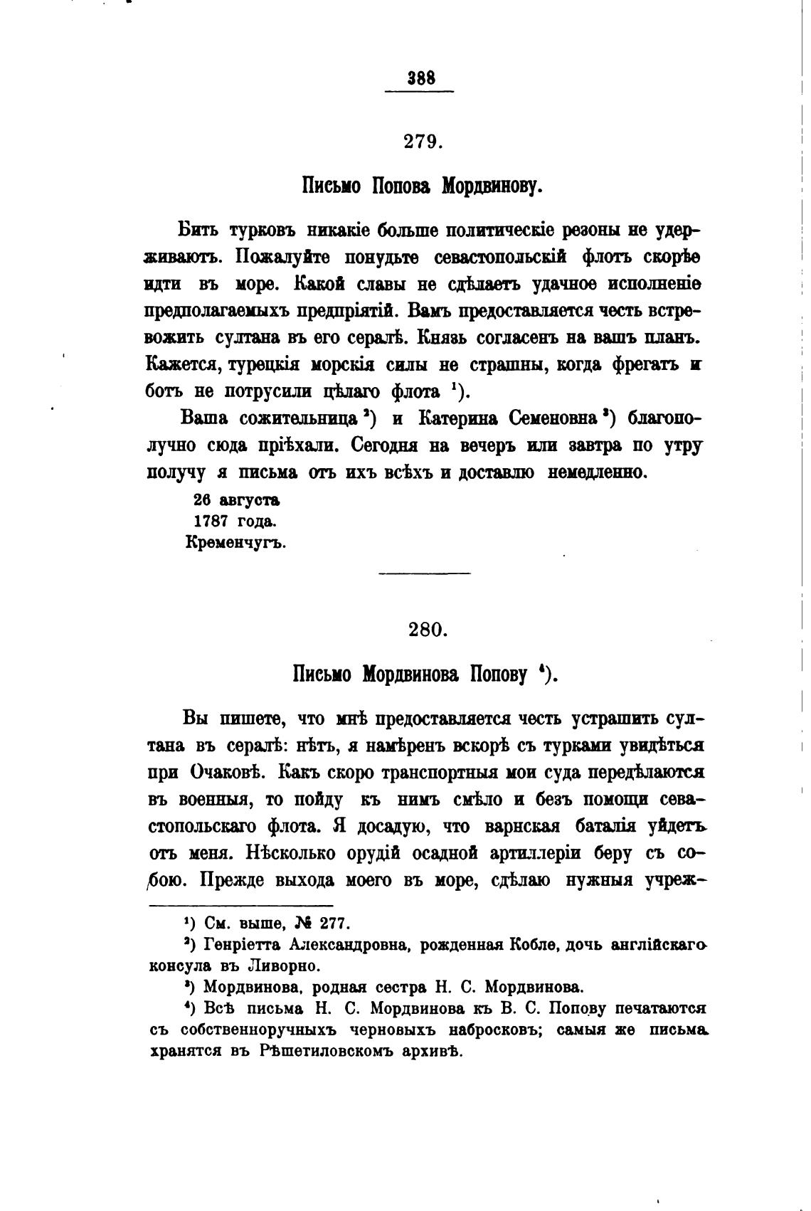 4) письма Н. С. Мордвинова кь В. С. Попову печатаются