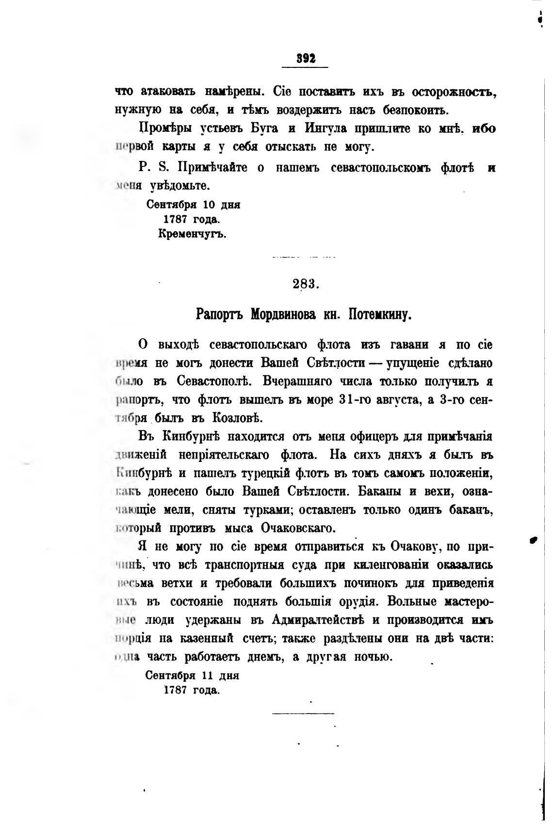 Рапорть Мордвинова кн. Потемкину.