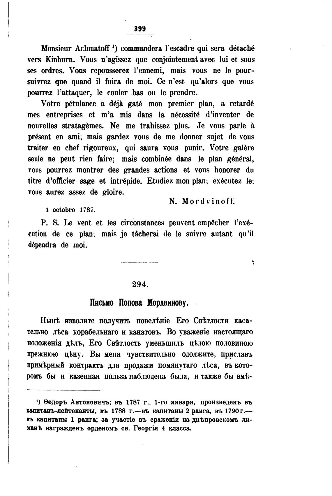 Письмо Попова Мордвинову.