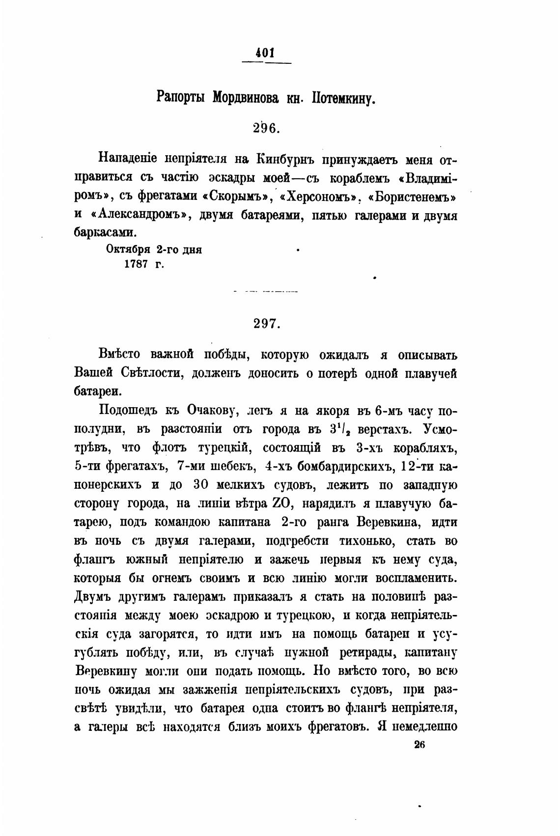 Рапорты Мордвинова кн. Потемкину.