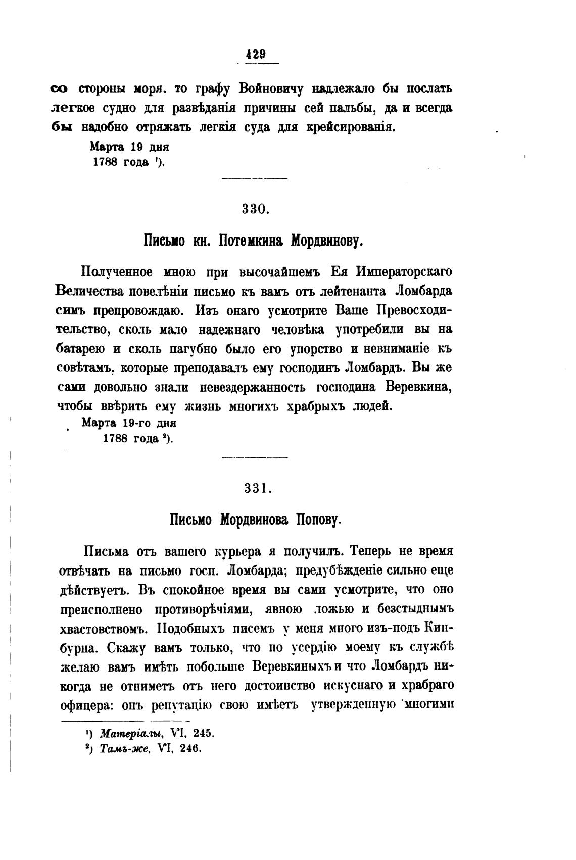 Письмо кн. Потемкина Мордвинову.