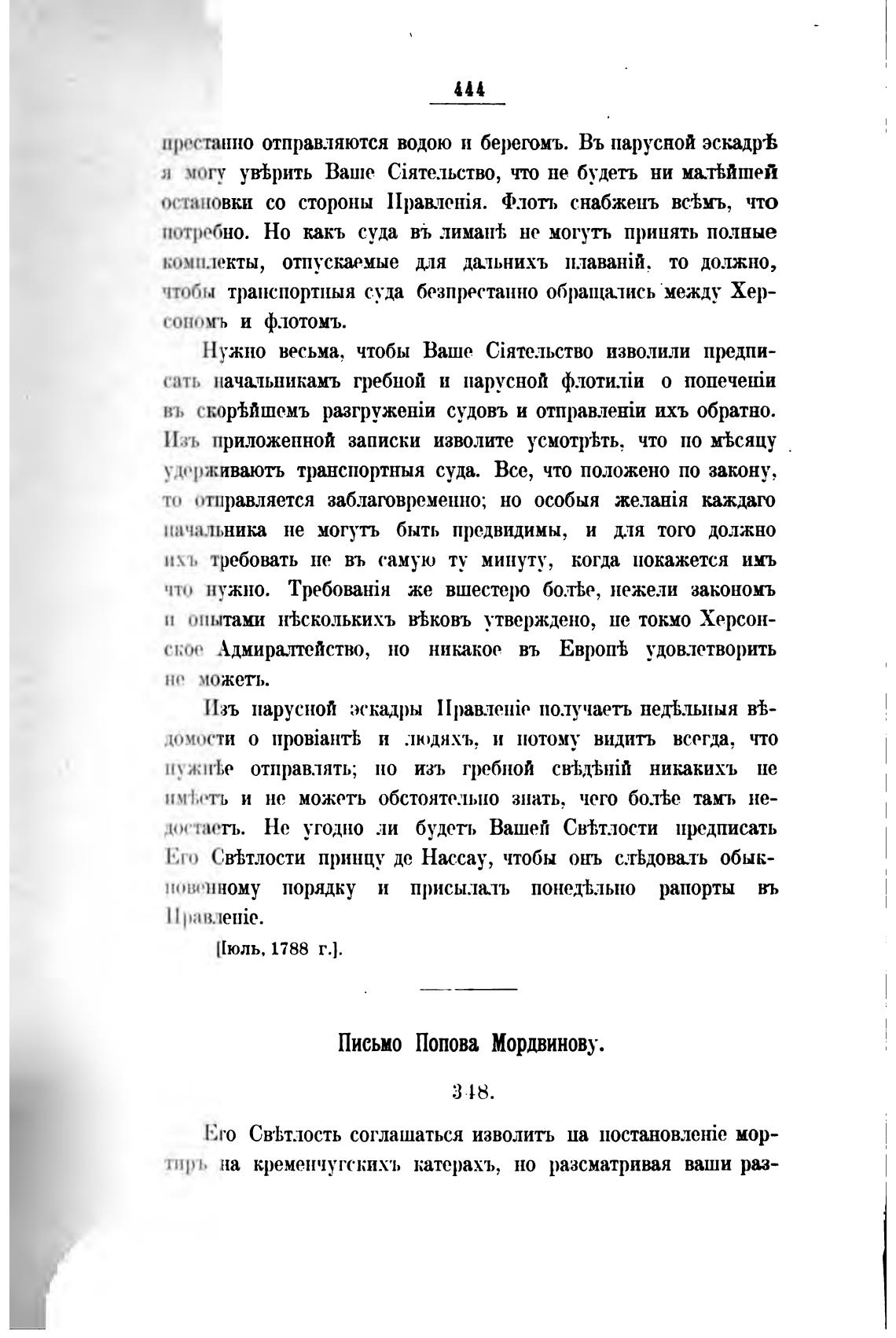 Письмо Попова Мордвинову.