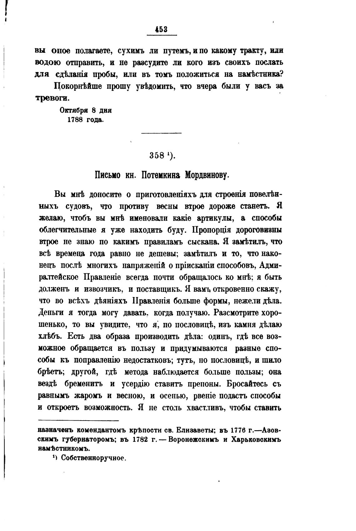 Письмо кн. Потемкина Мордвинову.
