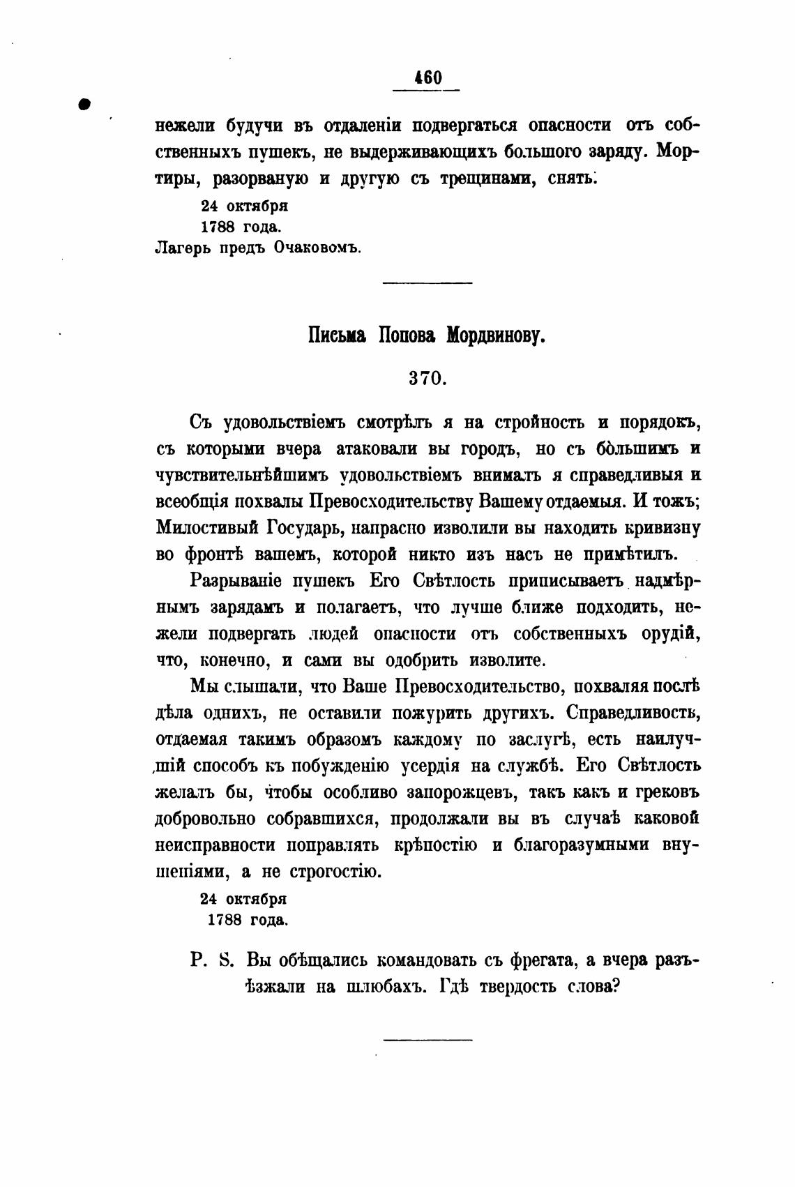Р. S. Вы об±щались командовать съ фрегата, а вчера разъ-