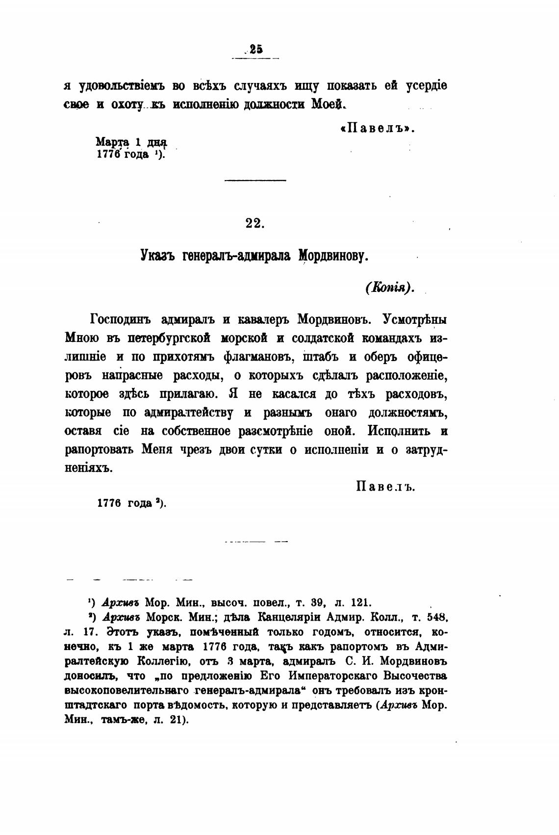 2) Арсивъ Морск. Мин.; д•Вла Адмир. Колл., т. 548.