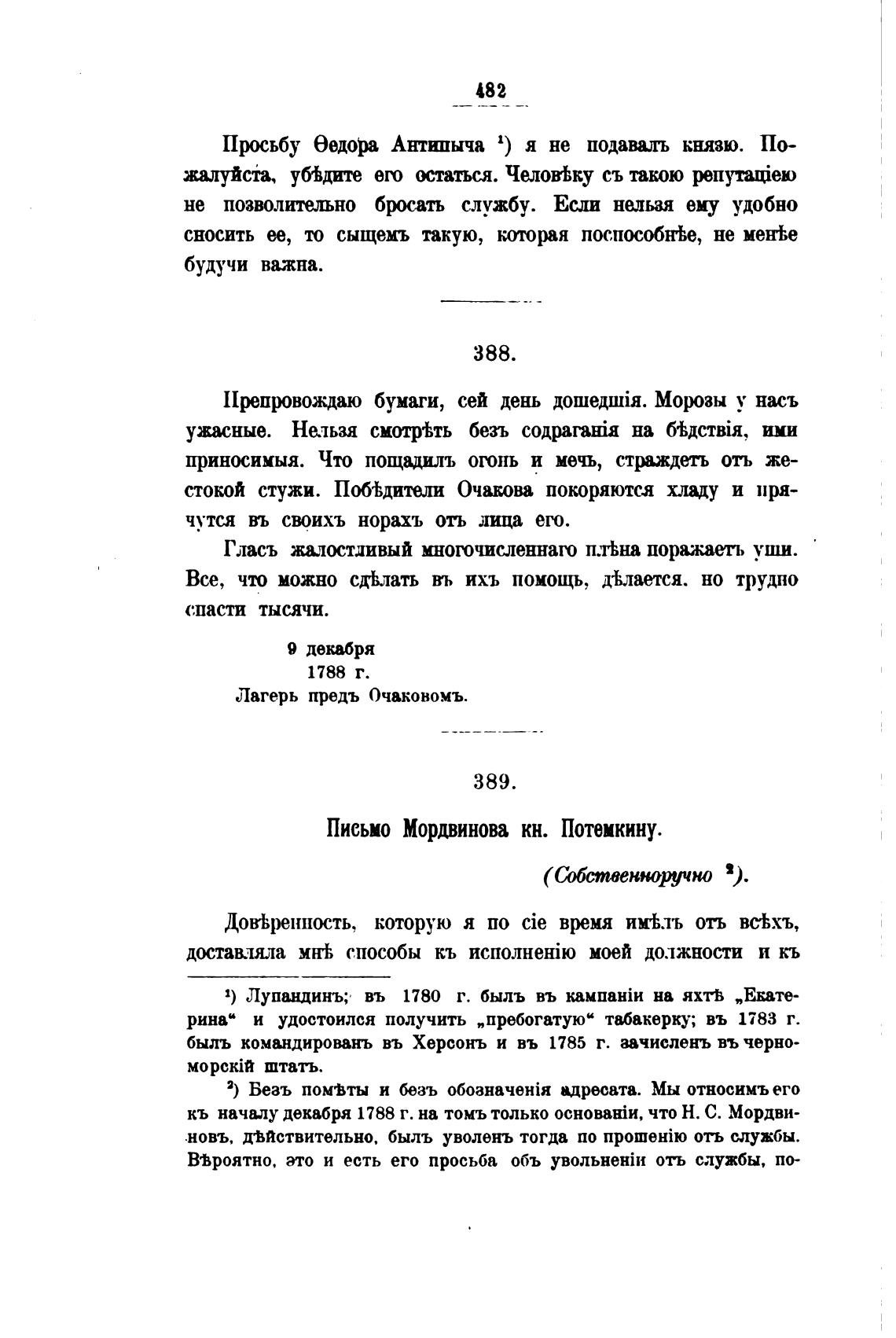 кь началу декабря 1788 г. на томъ только ocH0B8Hi»t, что Н. С. Мордви-
