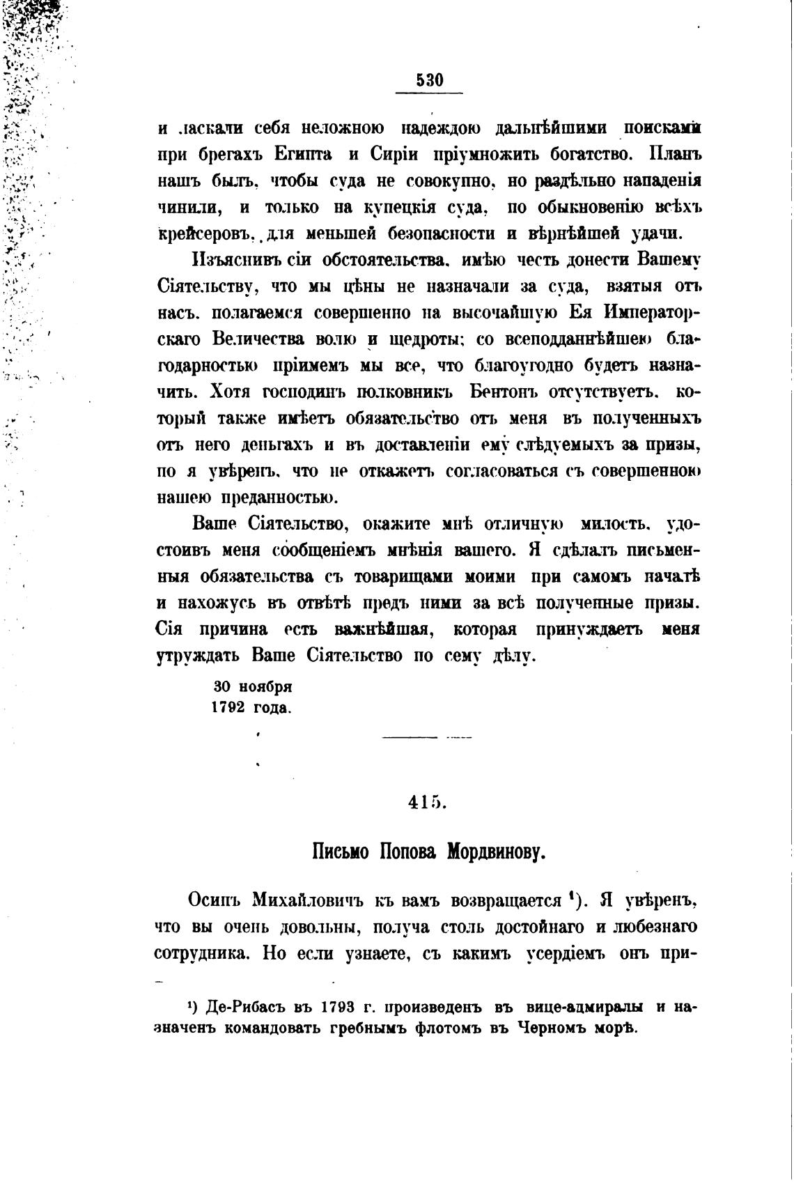 1) Де-Рибасъ въ 1793 г. произведень въ вице-адмиралы и на-
