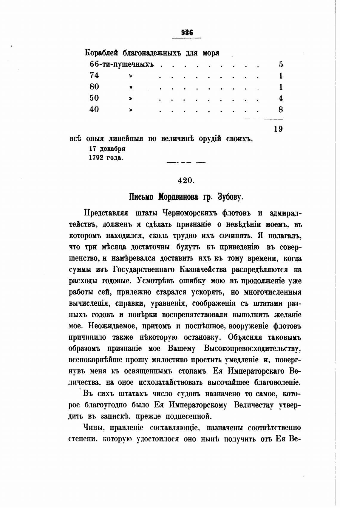 Письмо Мордвинова гр. Зубову.