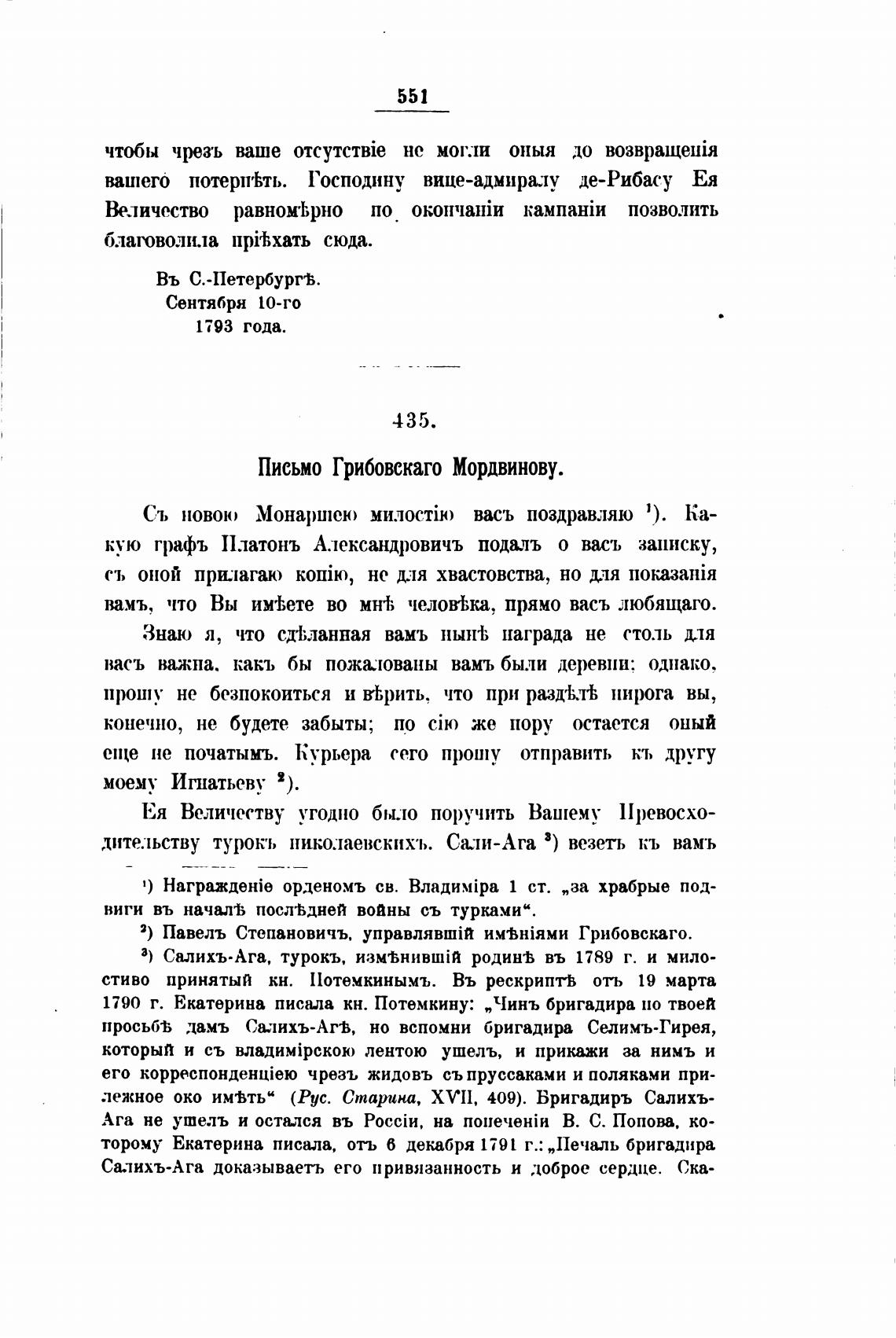 Письмо Грибовскаго Мордвинову.