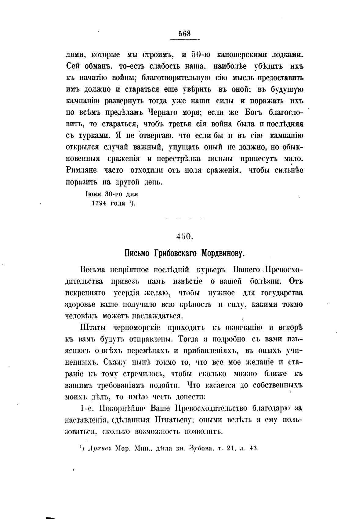Письмо Грибовскаго Мордвинову.