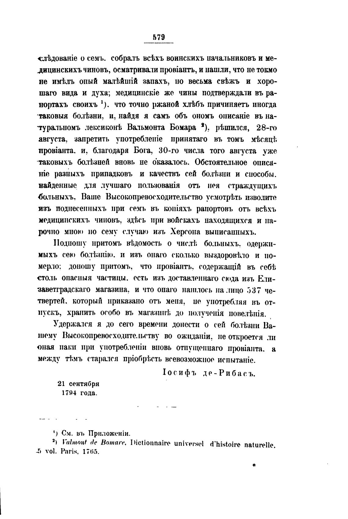 Удержался я до сего времени донести о сей бо.тЬзни Ва-
