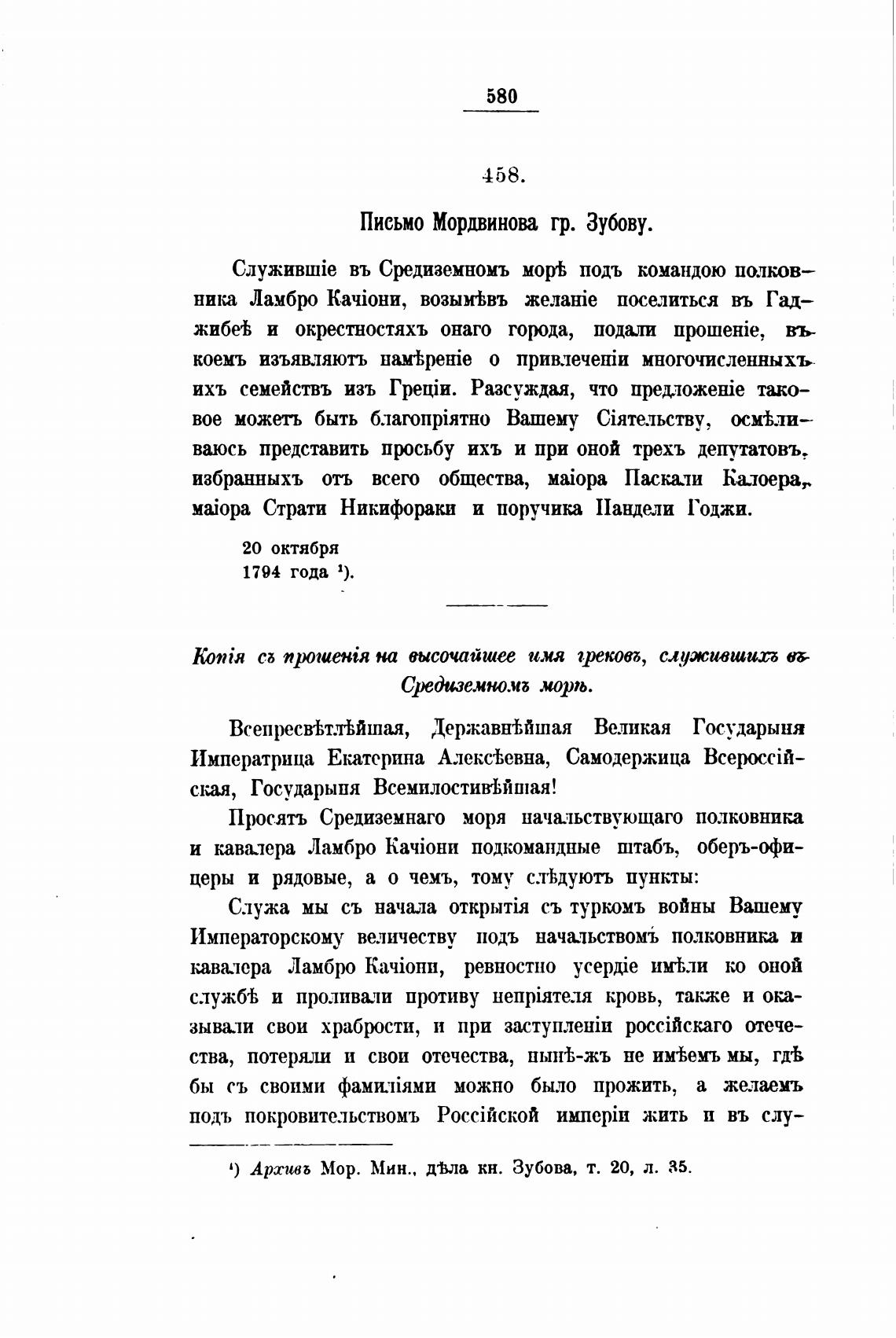 1) Арсивъ Мор. Мин.. ДО.ла кн. Зубова, т. 20, л. 35.