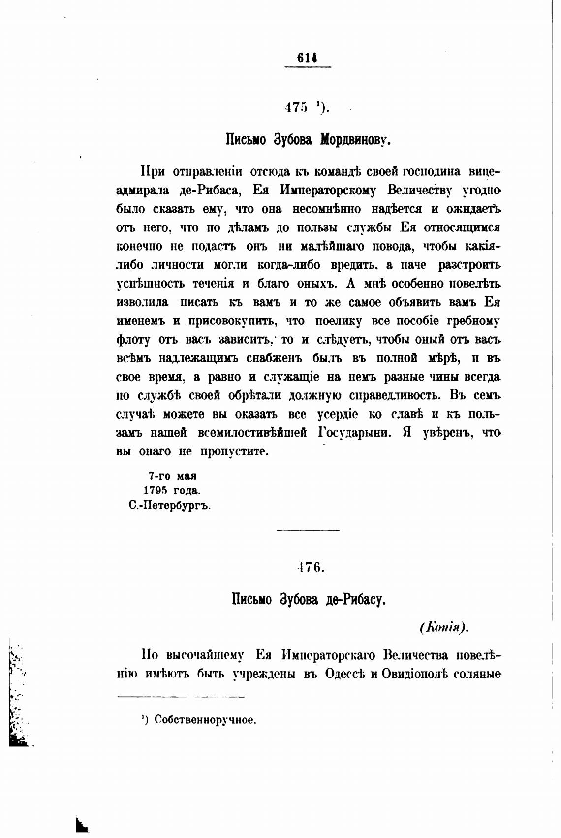Письмо ЗОва де-Рибасу.