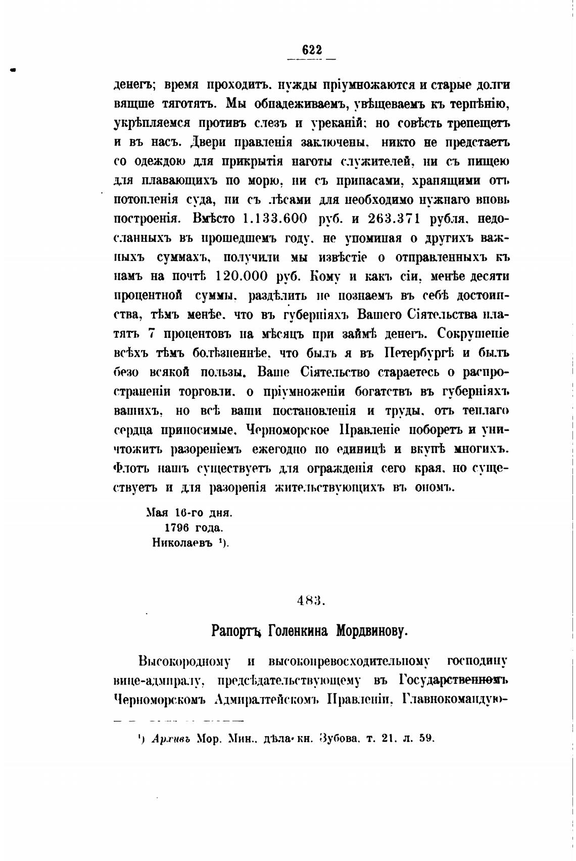 Рапортъ Голенкина Мордвинову.