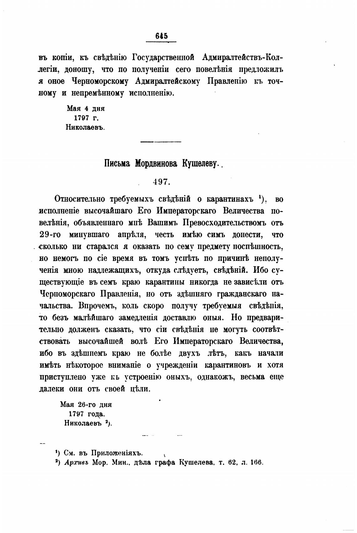 2) Аргивь Мор. Мин.. д•ћла графа Кушелева, т. 62, л. 166.