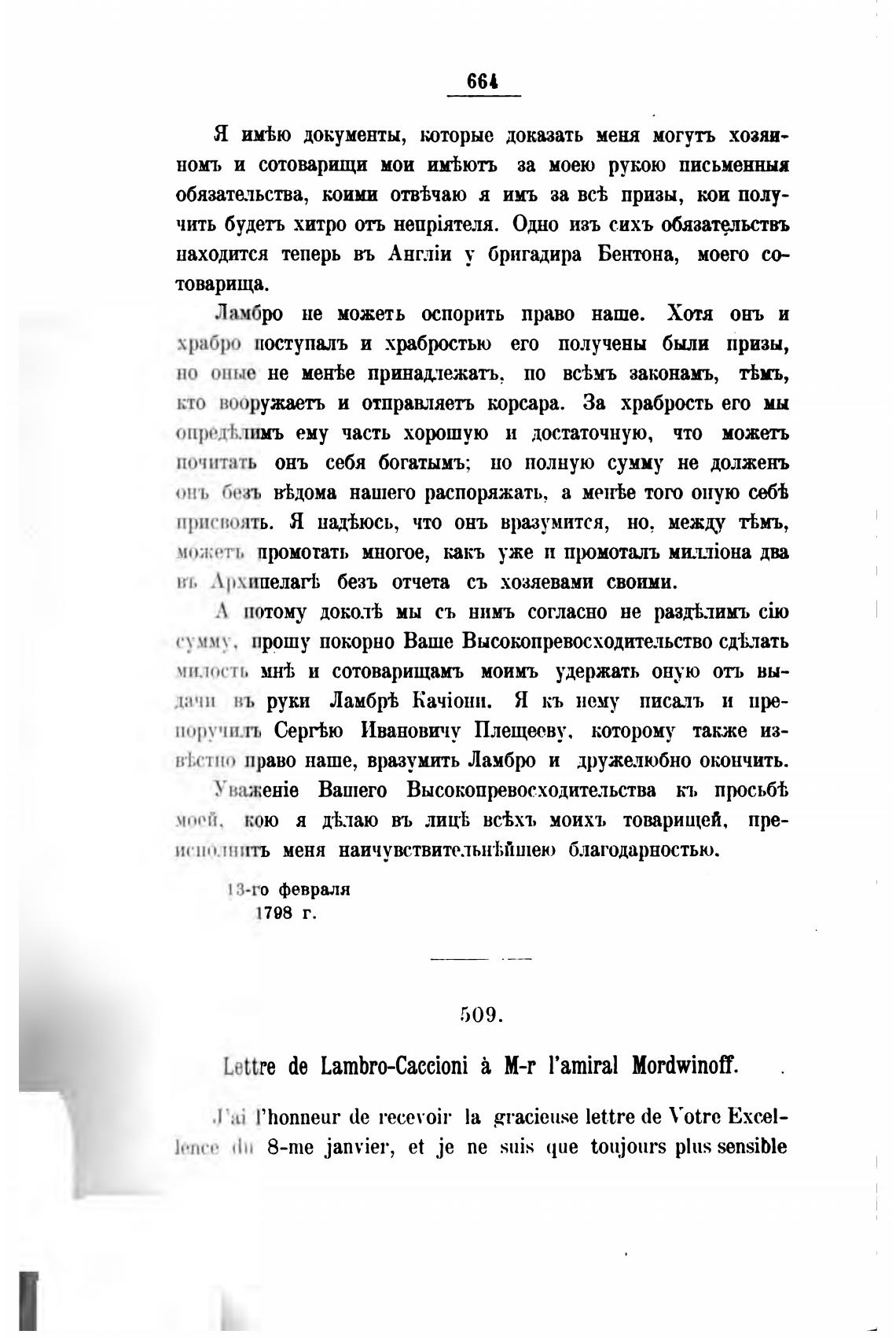 Lettre de Lambro-Caccioni М-т l'amiral MordwinoT.