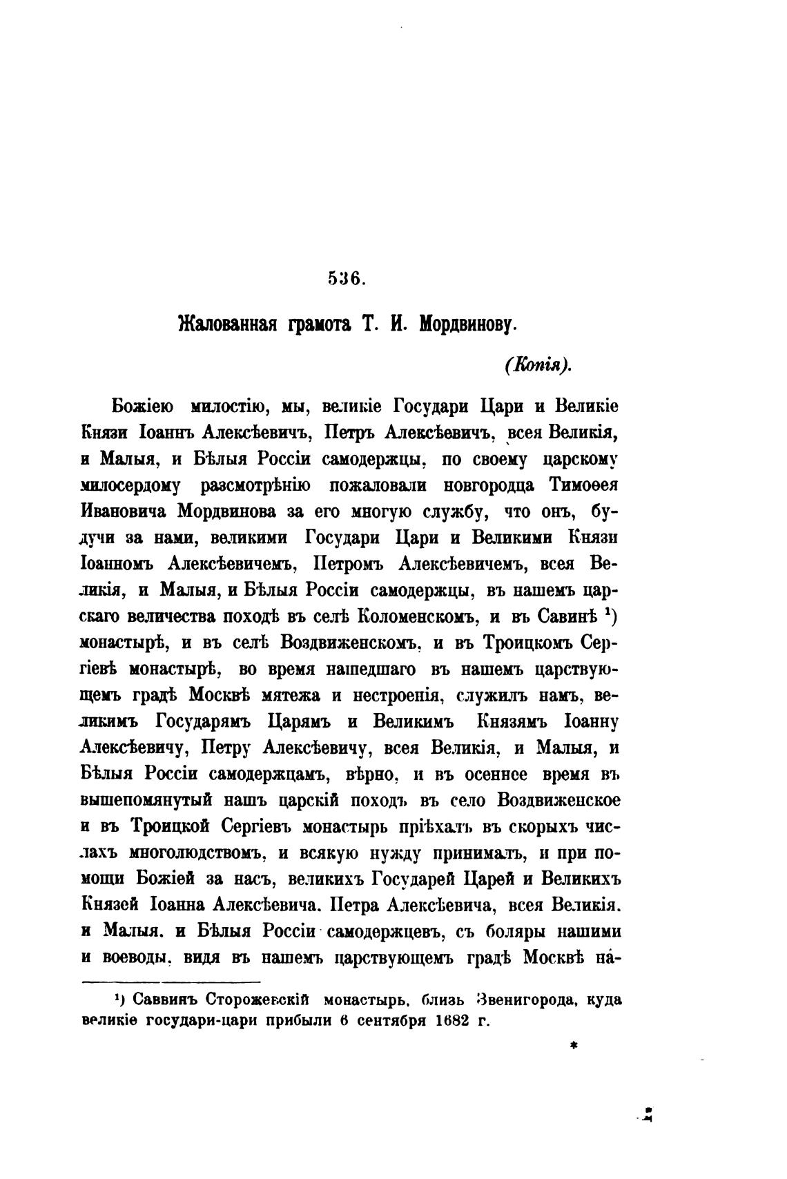 Ивановича Мордвинова за его многую службу, что онъ, бу-
