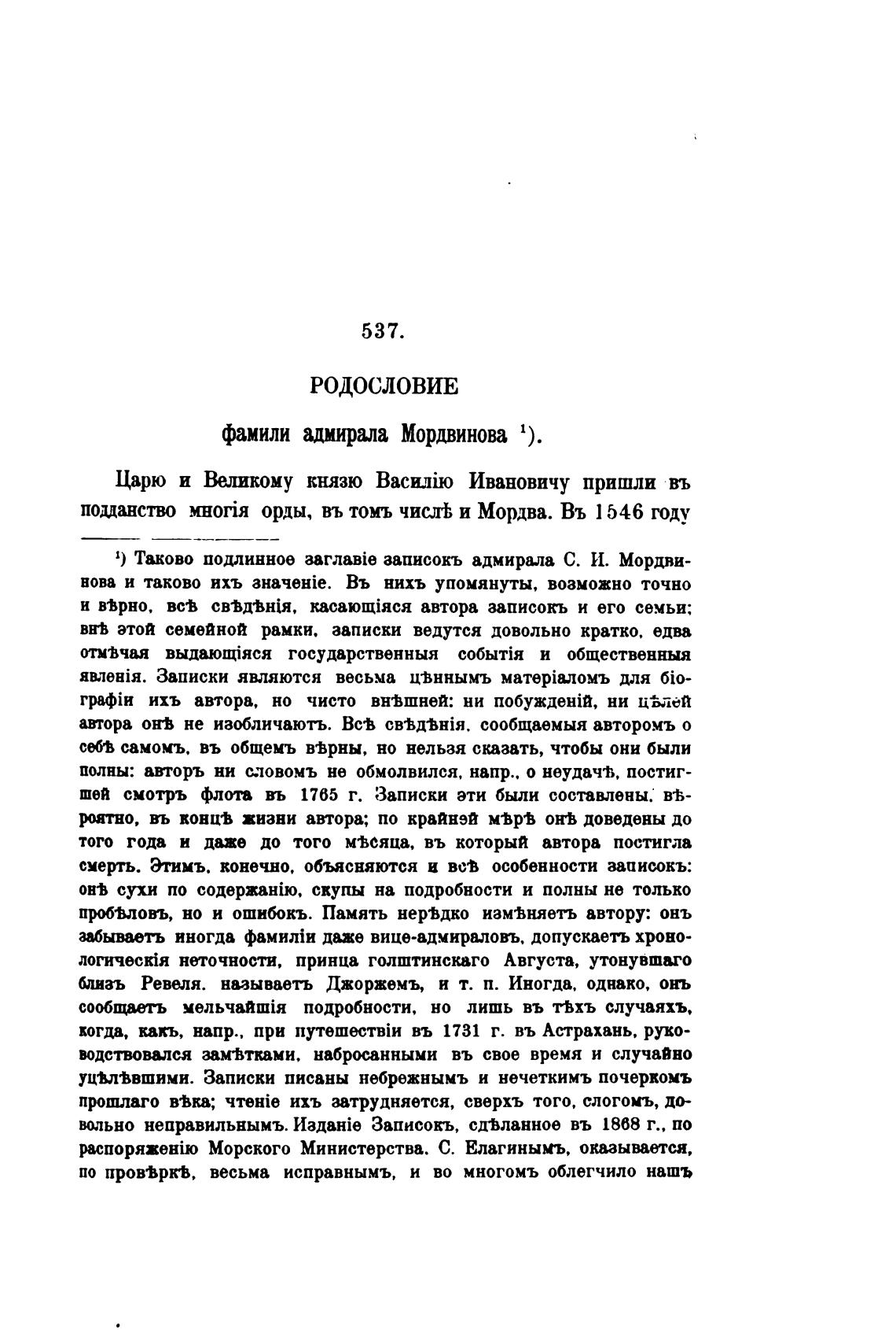 1) Таково подлинное записокъ адмирала С. И. Мордви-