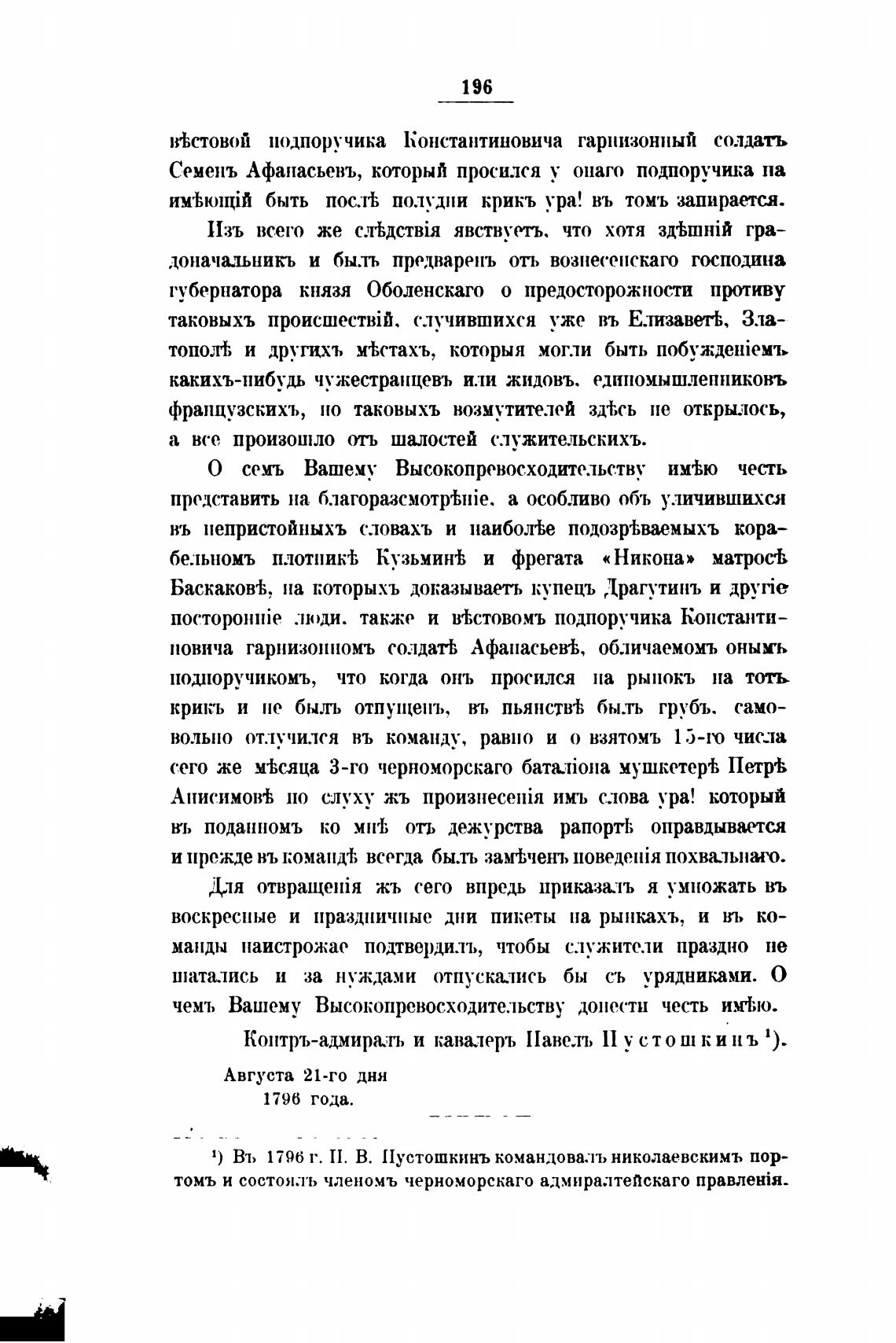 1) Въ 1796 г. П. В. [1устошкинъ командовалъ николаевскимъ пор-